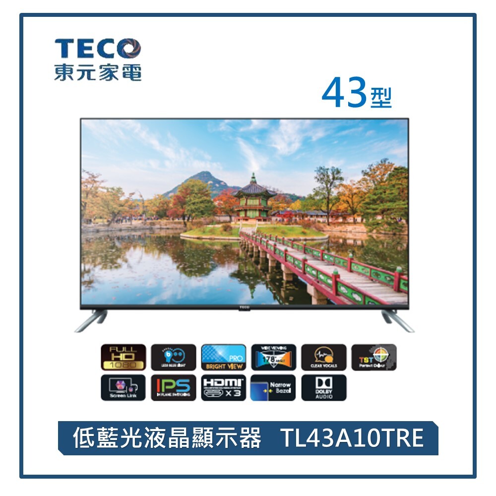 東元 43型IPS FHD低藍光液晶顯示器(含視訊盒) TL43A10TRE