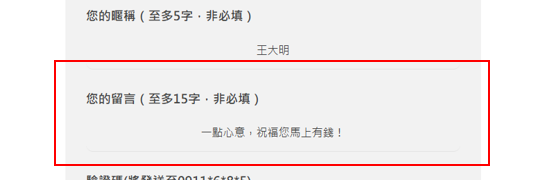 ● 留言內容示意: