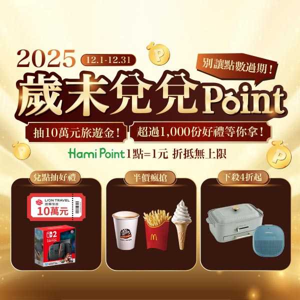 【2025歲末兌兌Point】兌點滿百抽10萬旅遊金、Switch 2