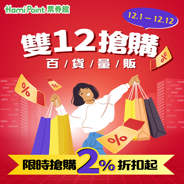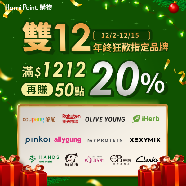【Hami Point購物】雙12年終狂歡 指定品牌最高20%,單筆滿額$1212再贈50點!