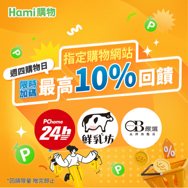 【週四購物日】Hami購物指定購物網站限時加碼最高10%回饋