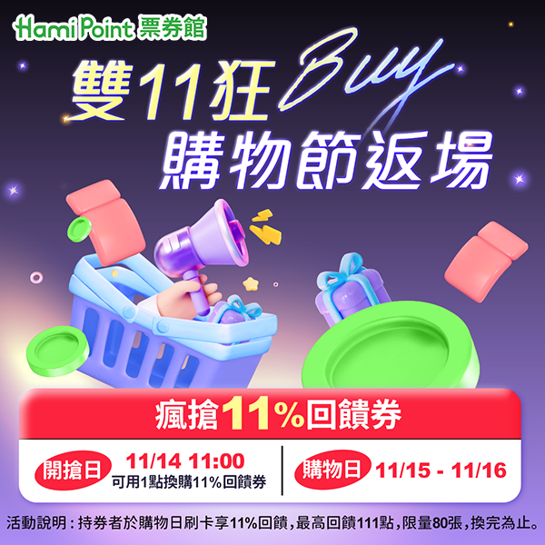 【票券館】雙11狂Buy購物節返場-瘋搶11%回饋券