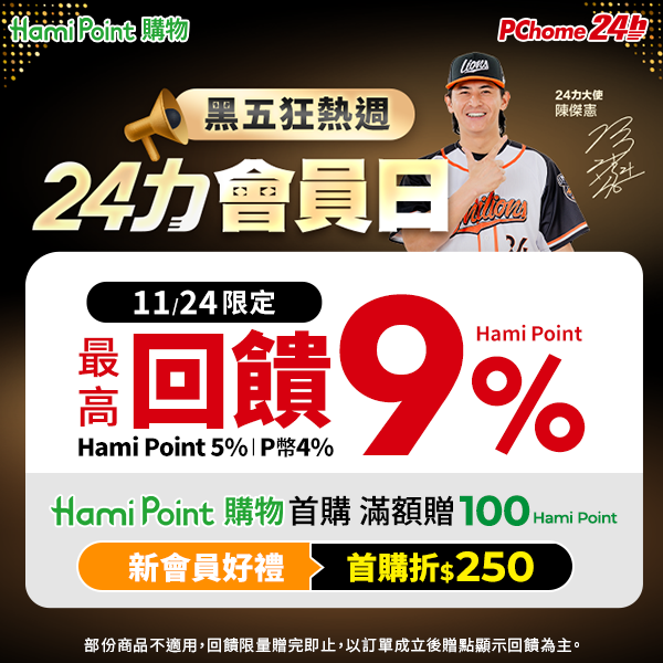 Hami購物-PChome 24h會員日,享最高9%回饋!首購滿額再贈100點!