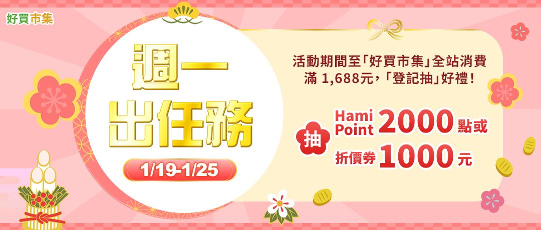 參與「【週一出任務】好買市集消費滿 1,688 登記抽 Hami Point 及好禮」活動(以下簡稱本活動)同時,即表示同意本活動之活動辦法、注意事項及各項相關規範。