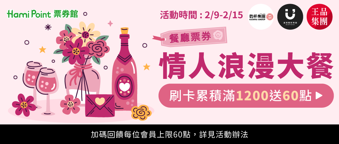 【票券館】情人浪漫大餐票券-刷卡累積滿1200送60點