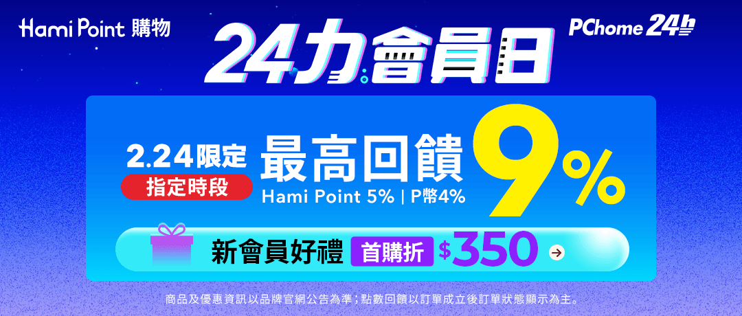 回饋內容:PChome 24h全站指定品消費最高 5% Hami Point 回饋