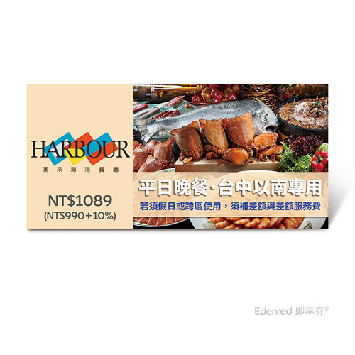 漢來海港餐廳平日晚餐好禮即享券(台中以南專用,假日或跨區使用補需差額)